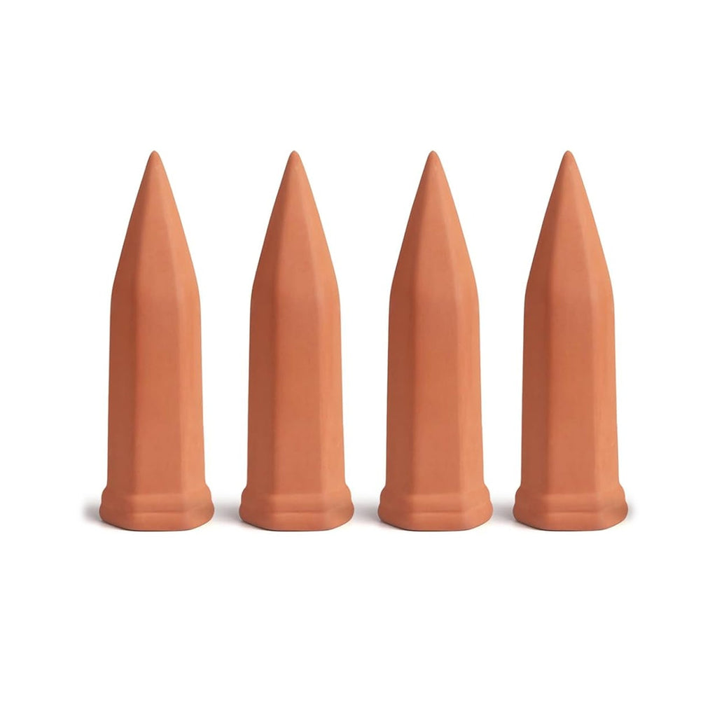 - EASY TO USE:Terracotta water spikes for wine bottle recycle any long neck bottle, just fill a bottle and self watering planter insert into the soil, transforms any planter into a self watering planter. We recommend that you soak the stakes for about 5 minutes before use, because this would prevent the stakes from pulling moisture quickly from the bottle. (Use plastic bottles to better protect the product from damage)