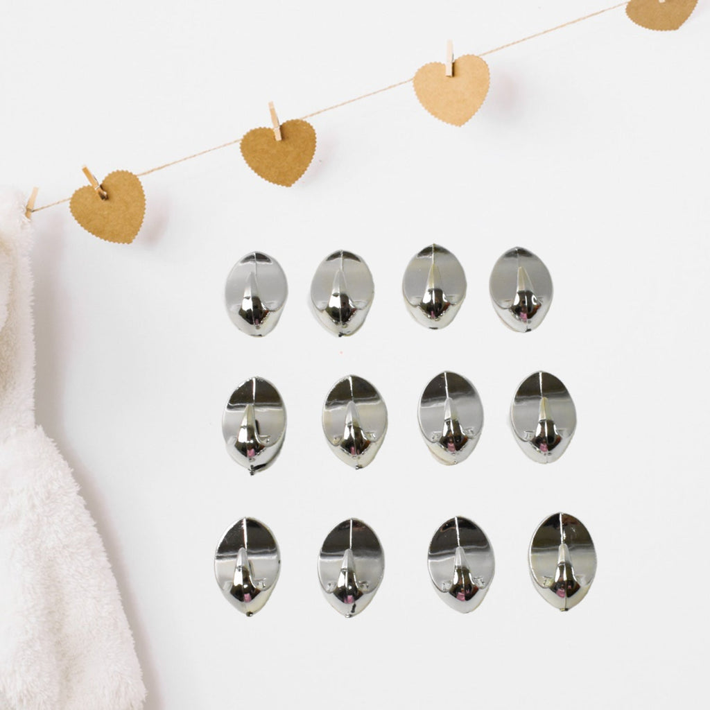 Wall Hook , Adhesive Hook , Self-Stick Hook , Organizer Hook , Bathroom Wall Hook , Key Hanging Hook , Silver Finish Hook , Oval Adhesive Hook , 12-Piece Hook Set