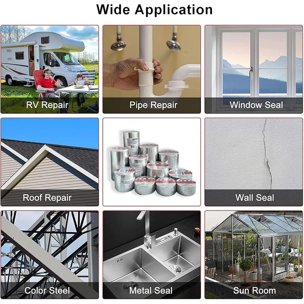 Leakage repair waterproof tape can be used for repairing, sealing, hose, pipe, surface crack etc. Aluminium tape also provides waterproof protection. waterproof adhesive tape is excellent moisture and weather resistant. - DURABLE & PERMANENT USE: